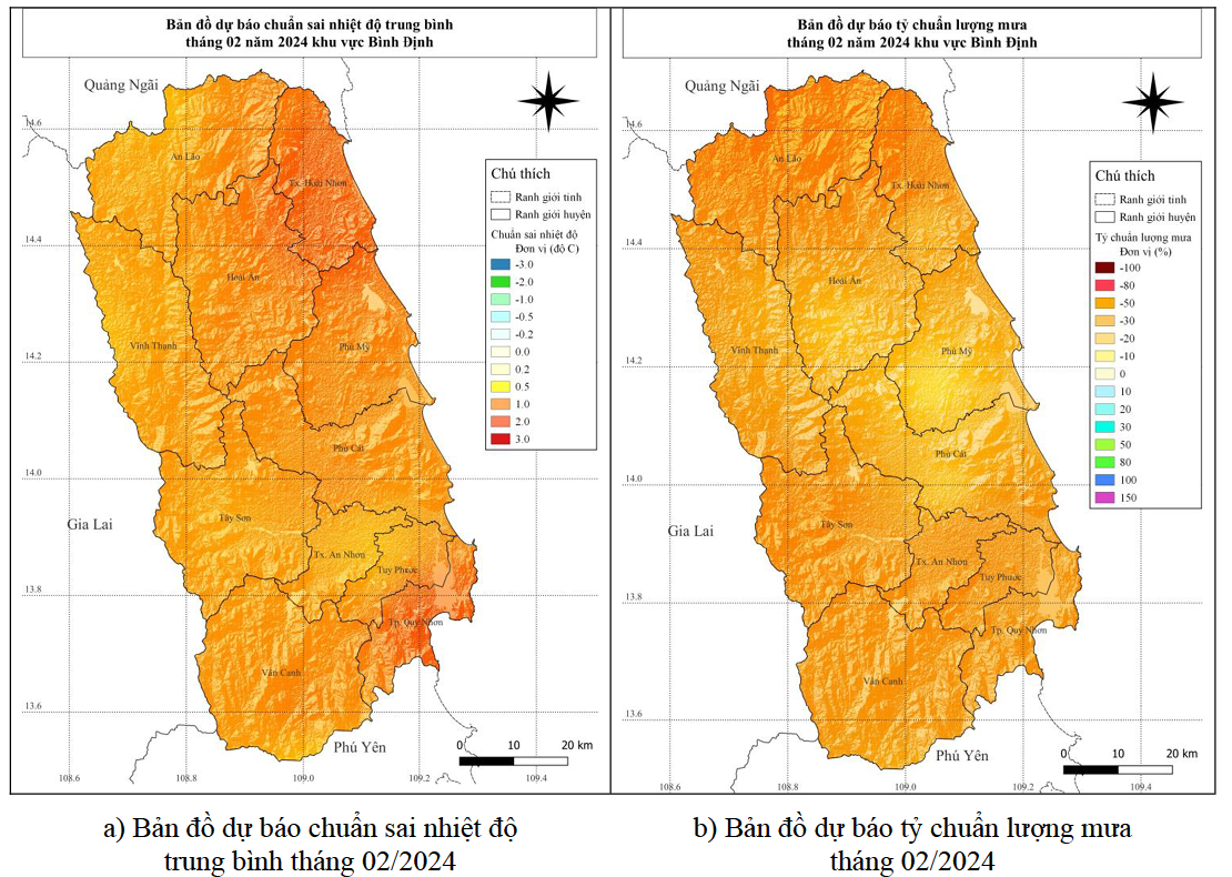 Khả năng không có XTNĐ hoạt động trên Biển Đông. Trong tháng 02/2024 không khí lạnh có xu hướng hoạt động yếu hơn so với TBNN cùng thời kỳ, khả năng có khoảng 3 - 4 đợt ảnh hưởng đến Bình Định.