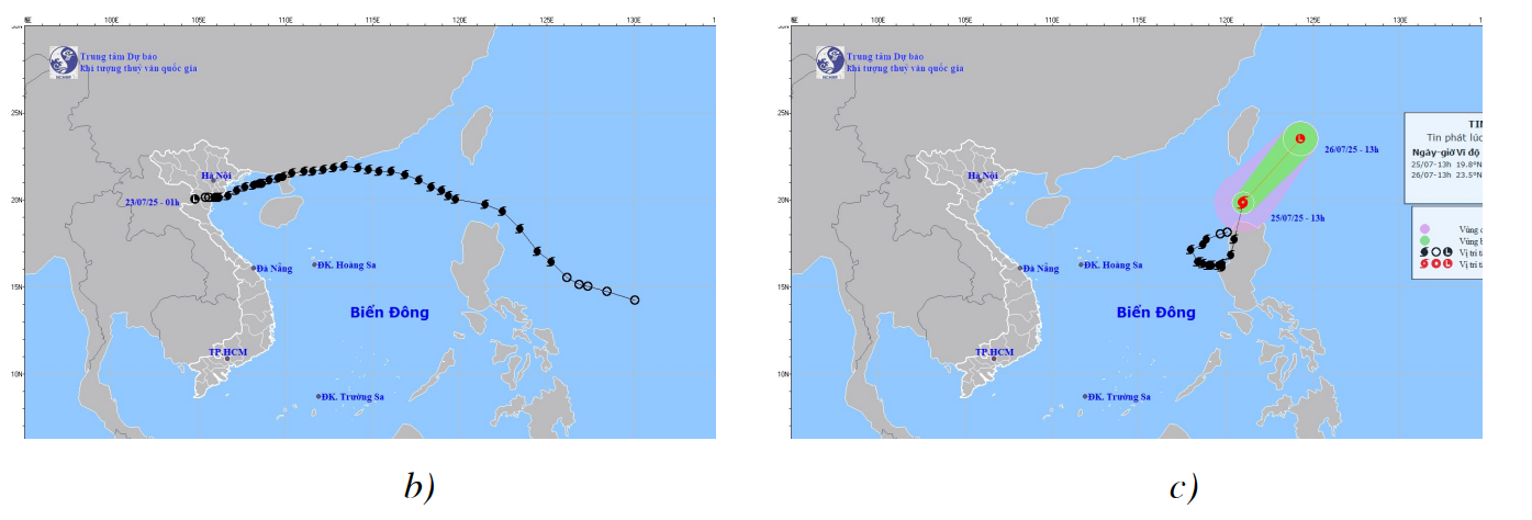Hình 1: (a) Quỹ đạo của cơn bão số 2 (DANAS); (b) Quỹ đạo của cơn bão số 3 (WIPHA), (c) Quỹ đạo của cơn bão số 4 (COMAY)