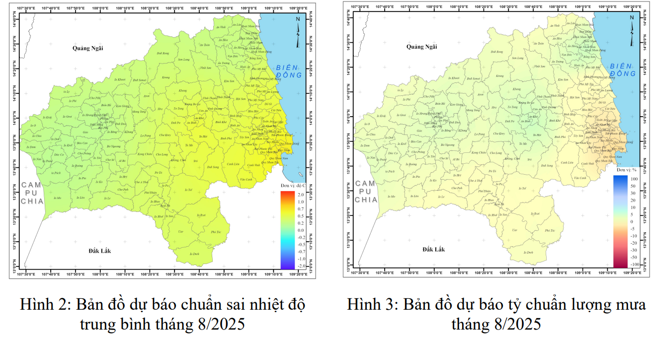Bão và áp thấp nhiệt đới (ATNĐ): Trong tháng 8/2025, có khả năng xuất hiện 01-02 cơn bão/ATNĐ trên khu vực Biển Đông (TBNN: Trên Biển Đông là 2,4 cơn, đổ bộ vào đất liền Việt Nam là 0,8 cơn) và có thể ảnh hưởng đến đất liền Việt Nam; không có khả năng ảnh hưởng đến đất liền khu vực tỉnh Gia Lai.