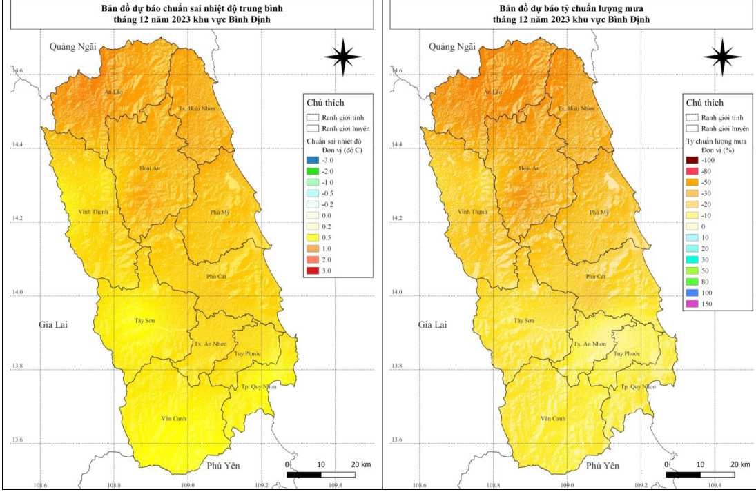 - Không khí lạnh (KKL): Trong tháng 12/2023 KKL tiếp tục gia tăng về tần suất. Tuy nhiên, cường độ các đợt KKL có xu hướng hoạt động yếu hơn so với TBNN cùng thời kỳ, khả năng có 3 - 5 đợt ảnh hưởng đến Bình Định.