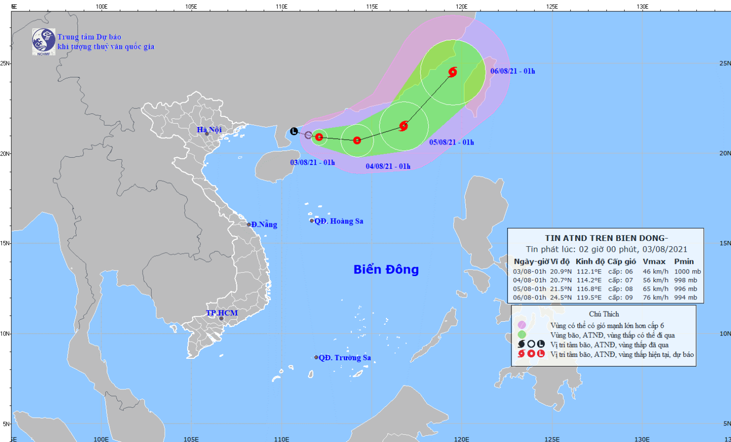 Tin phát lúc: 02h00 ngày 03/8/2021, bản tin tiếp theo được phát lúc 08h00 ngày 03/8.