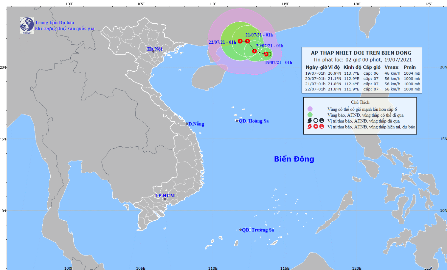 Tin phát lúc: 02h00 ngày 19/7/2021, bản tin tiếp theo được phát lúc 08h00 ngày 19/7.
