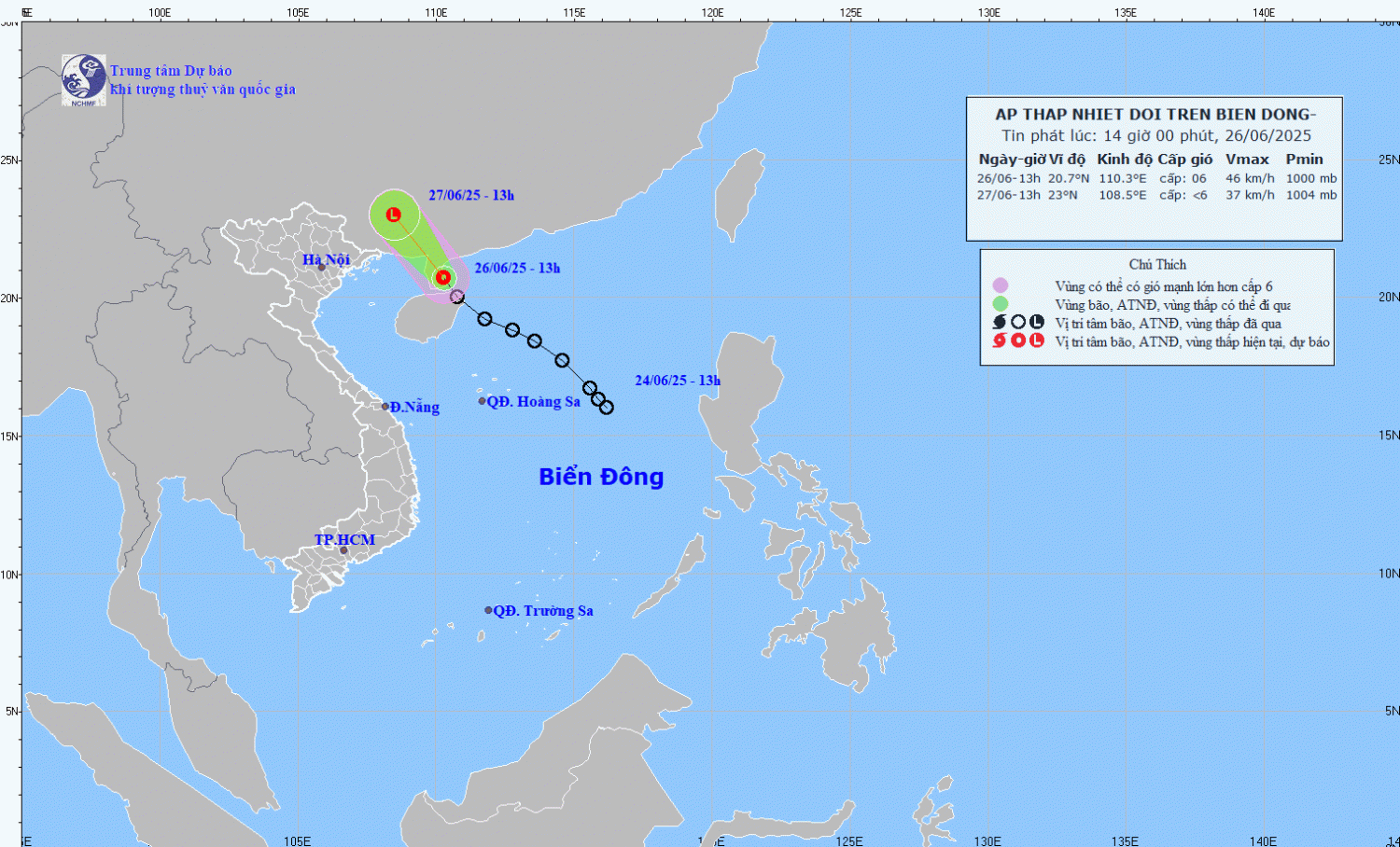 Tin áp thấp nhiệt đới trên Biển Đông (14h00 ngày 26/6)