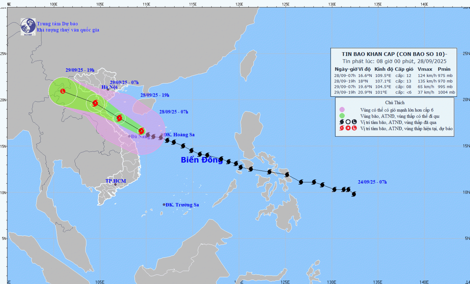 Hình1. Bản đồ dự báo quỹ đạo và cường độ bão số 10 phát lúc 08h00 ngày 28/9/2025