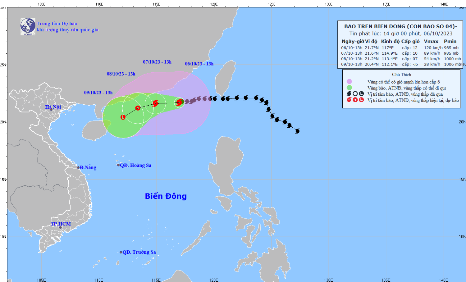 | 13h/09/10 | Tây Nam, 5- 10km/h và suy yếu thành một vùng áp thấp |