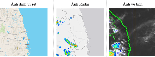 Hiện nay qua theo dõi trên ảnh mây vệ tinh, định vị sét và ảnh radar cho thấy mây đối lưu đang phát triển trên khu vực vùng núi phía nam tỉnh Bình Định (Vân Canh).