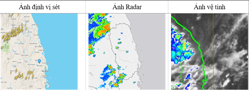 Hiện nay: Qua theo dõi trên ảnh mây vệ tinh, định vị sét và ảnh radar cho thấy mây đối lưu đang phát triển trên khu vực vùng núi phía tây tỉnh Bình Định (An Lão, Vĩnh Thạnh, Tây Sơn, Vân Canh.