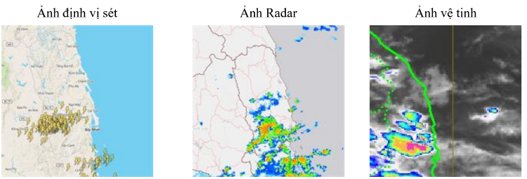 Hiện trạng trong 03 giờ qua: phân tích trên ảnh mây vệ tinh, định vị sét và ảnh radar cho thấy mây đối lưu đang phát triển, gây mưa rào và dông trên các khu vực tỉnh Bình Định (An Nhơn, Phù Cát, Vân Canh, Tây Sơn, Tuy Phước).
