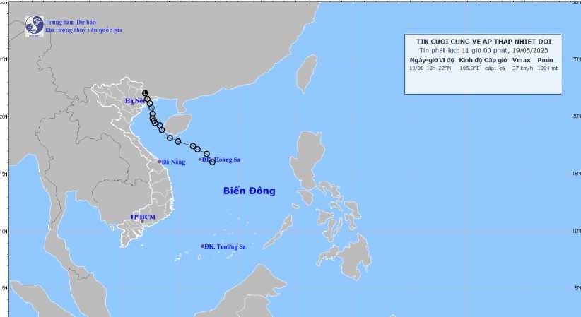 Hình 1. Bản đồ quỹ đạo áp thấp nhiệt đới tính đến 11h00 ngày 19/8/2025