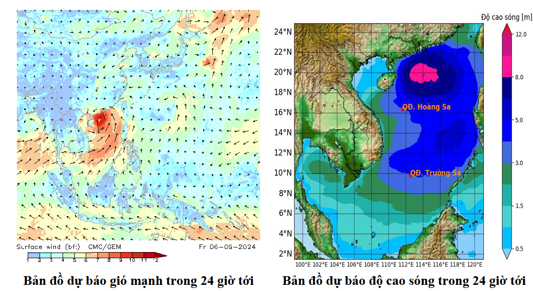 Dự báo tác động: Toàn bộ tàu thuyền và các hoạt động khác tại các vùng biển trên đều có nguy cơ cao chịu tác động của gió mạnh, sóng lớn. Đề phòng sạt lở bờ biển ở các khu vực ven bờ.