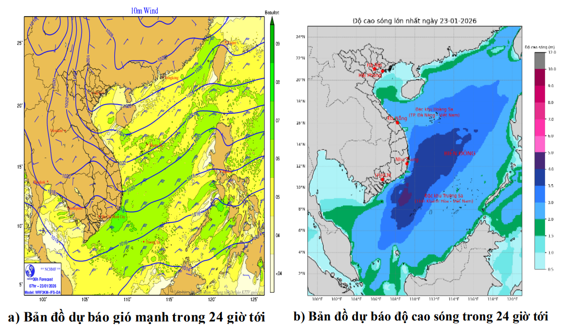 Hiện trạng đã qua: Hiện nay (23/01), vùng biển Gia Lai có gió Đông Bắc mạnh cấp 6, giật cấp 7-8. Biển động. Sóng biển cao 2,0-4,0m.