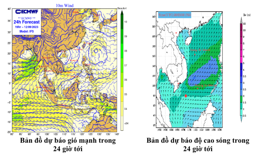 | Ngày và đêm 12/9 | Vùng biển phía bắc tỉnh | Cấp 5, có lúc cấp 6, giật cấp 7-8. Biển động. | Tây Nam | 2,0-3,0 | Tây Nam |
