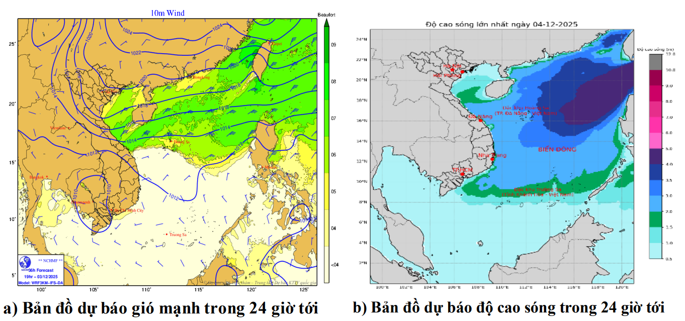 Ngoài ra, đêm 03 và ngày 04/12, vùng biển Gia Lai có mưa rào và dông rải rác. Trong mưa dông có khả năng xảy ra lốc xoáy và gió giật mạnh.