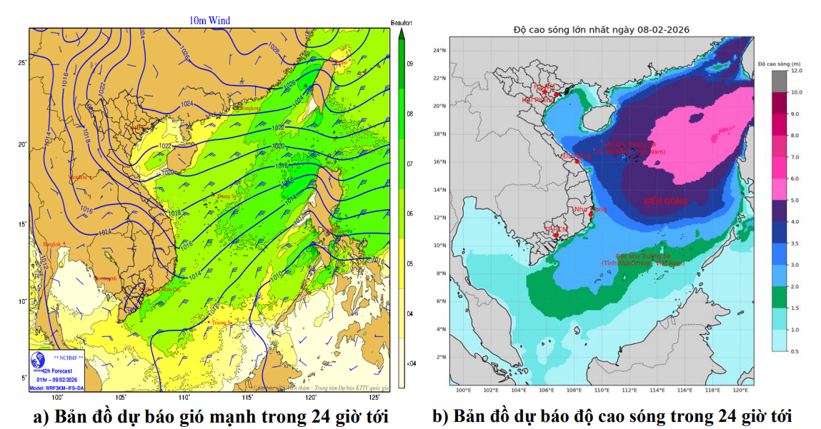 Cảnh báo: Đêm 09 và ngày 10/02, vùng biển Gia Lai có gió Đông Bắc mạnh cấp 5, có lúc cấp 6, sóng biển cao 1,5-2,5m; biển động nhẹ.