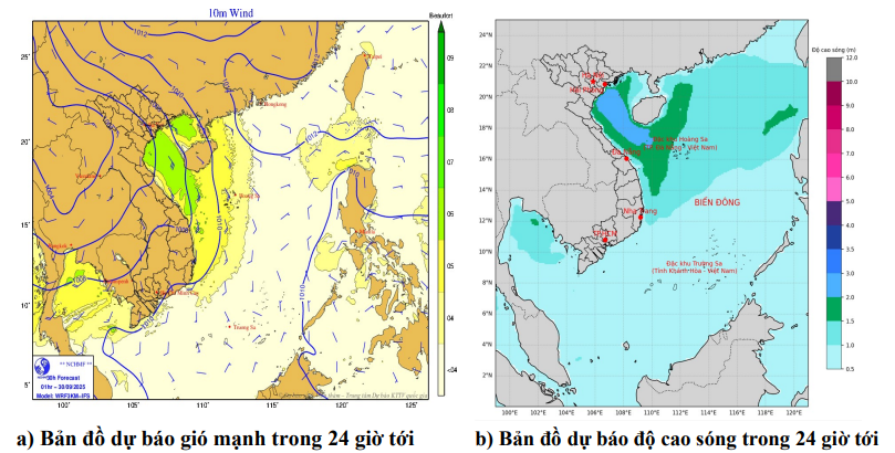 Dự báo tác động: Toàn bộ tàu thuyền và các hoạt động khác tại các vùng biển trên đều có nguy cơ cao chịu tác động của gió mạnh, sóng lớn. Đề phòng sạt lở bờ biển và những đê kè xung yếu khu vực ven bờ.