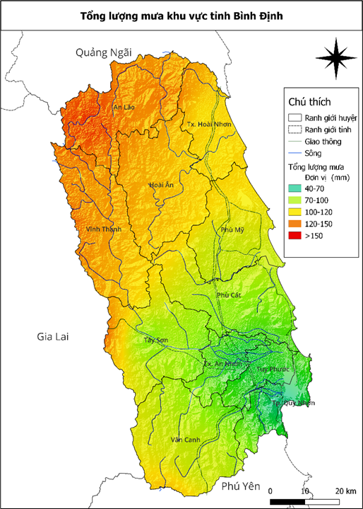 Từ ngày 07/11 đến ngày 08/11, khu vực Bình Định có mưa vừa, có nơi mưa to đến rất to, với lượng mưa phổ biến từ 40 - 80mm, có nơi trên 100mm.