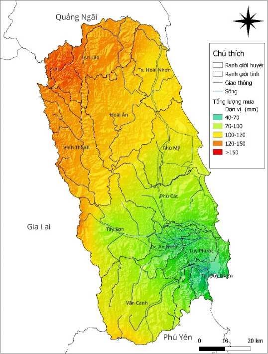 Bản đồ dự báo lượng mưa khu vực tỉnh Bình Định từ 19h/26/10-19h/27/10