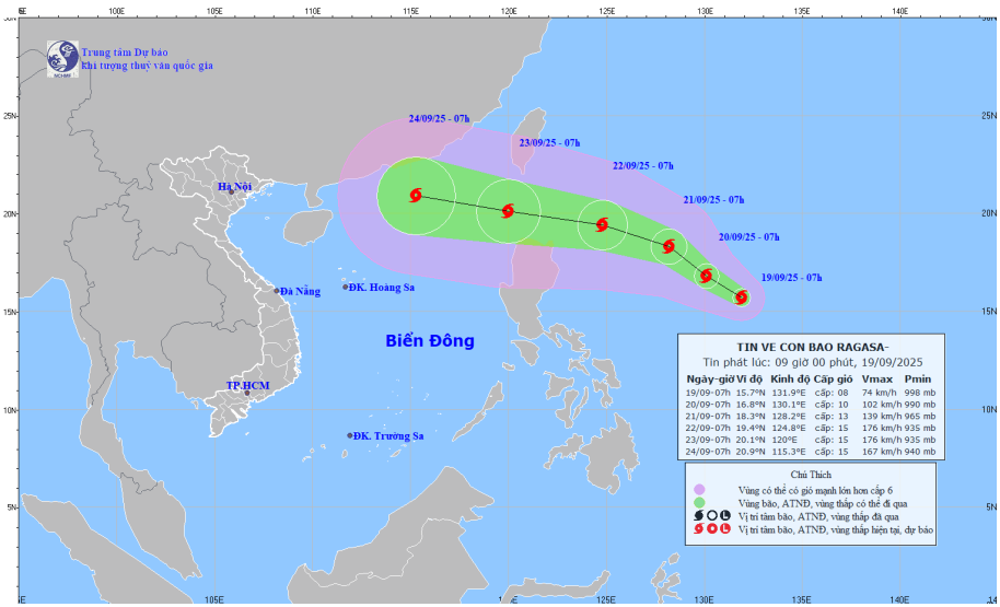 Hình1. Bản đồ dự báo quỹ đạo và cường độ bão RAGASA phát lúc 09h00 ngày 19/9/2025